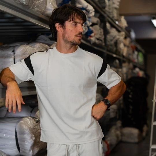 Comodidad y estilo se combinan en este conjunto diseñado para quienes buscan una prenda versátil y moderna. La remera, confeccionada en tela deportiva liviana y respirable, presenta un diseño bicolor con franjas contrastantes que le dan un toque distintivo. El pantalón acompaña con un calce cómodo y práctico, ideal tanto para entrenar como para uso urbano.